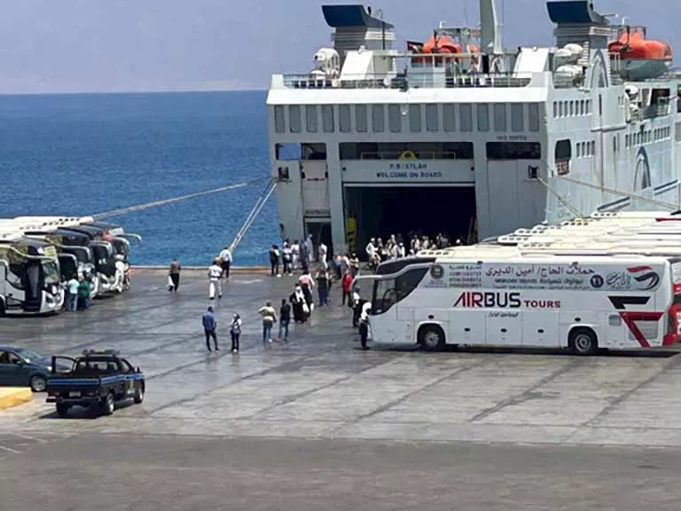 ميناء نويبع يستقبل 1912 حاجًا بريًا على متن 49 أتوبيسًا
