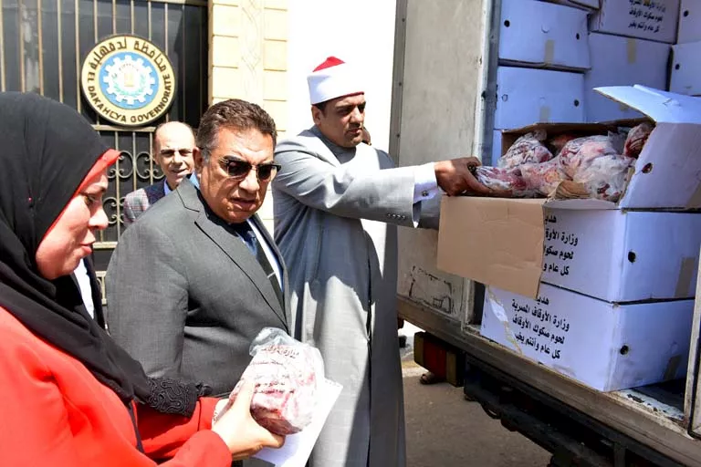 وأشار المحافظ إلى أن إجمالي ما تم توزيعه من لحوم "صكوك الأوقاف" خلال العام الحالي بلغ 14 طنًا، تم تسليمها لمستحقي برنامج "تكافل وكرامة"، بالتنسيق بين مديرية التضامن الاجتماعي ومديرية الأوقاف.