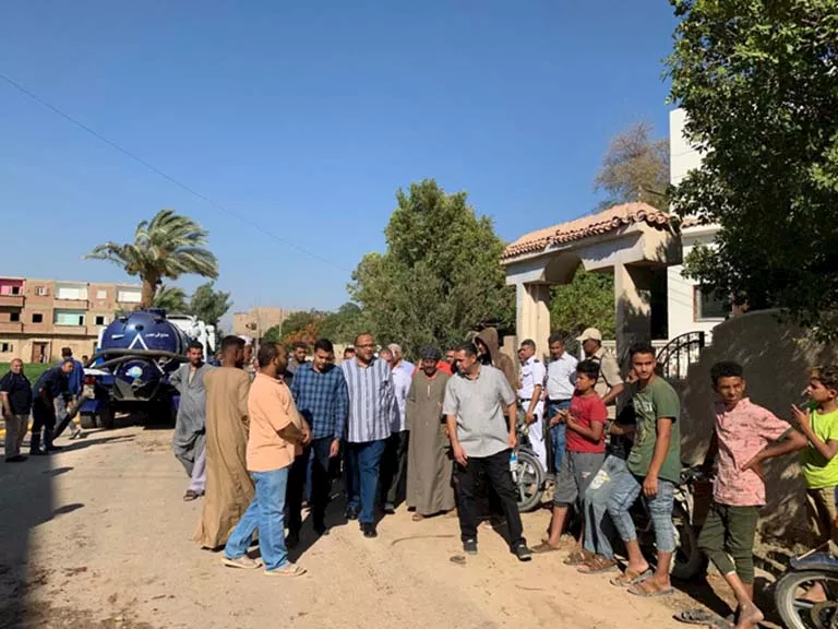 مياه سوهاج تدفع بـ21 معدة لاحتواء تسرب الصرف بنجع الدير (صور)