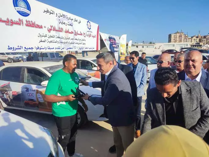 وشهد توزيع السيارات كل من: الدكتور عبد الله رمضان نائب المحافظ، والدكتور خالد نصر مدير عام منطقة القناة والقاهرة الكبرى، بجهاز تنمية المشروعات، والدكتور مبارك فرج مدير فرع جهاز المشروعات بالسويس، والمهندس أحمد سليمان مدير عام منطقة القنال بشركة مصر للبترول، مهندس بيشوى أنطونيوس مدير عام منطقة القناة لشركة التعاون للبترول، حيث تعاونت الشركتان مع جهاز المشروعات لتوفير قطع الغيار ومستلزمات الصيانة للسيارات التي وفرتها المبادرة.