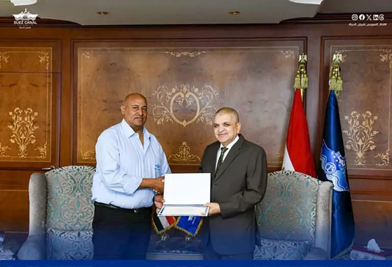 رئيس قناة السويس يكرم مشرفي محطة إرشاد القنطرة بعد حادث سفينة RED ZED1
