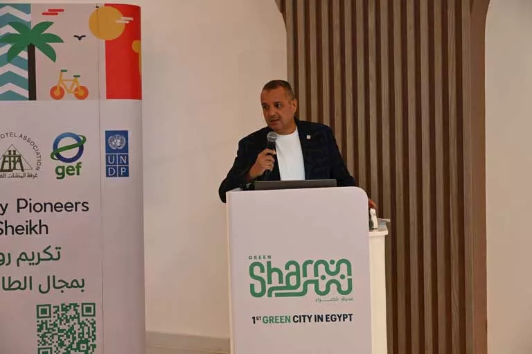 كما أكد المهندس محمد عليوه، مدير مشروع جرين شرم، أن برنامج "جرين شرم" يهدف إلى تحقيق تنمية خضراء مستدامة في شرم الشيخ، من خلال تطبيق تكنولوجيات منخفضة الانبعاثات والحفاظ على الموارد الطبيعية، والذي يعد نتاج عمل متواصل لأكثر من عامين بالتعاون مع برنامج الأمم المتحدة الإنمائي، ومحافظة جنوب سيناء، والقطاع الخاص، والمجتمع المدني، سواء من خلال المساهمة في تنفيذ التطبيقات البيئية، أو من خلال الاستثمار في الطاقة النظيفة.