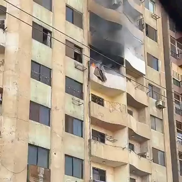 بالصور- حريق يلتهم شقة بأحد الأبراج السكنية في بني سويف