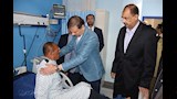 استقبل وزير الزراعة والوفد المرافق له في المستشفى الدكتور حسان النعماني، رئيس جامعة سوهاج، حيث وجه "فاروق" الشكر له على جهوده المبذولة ومتابعته المستمرة لحالة المصاب أولاً بأول، منذ اللحظات الأولى لدخوله المستشفى.