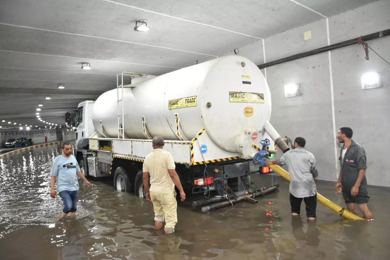 وشهد نفق عرابي تراكم كميات كبيرة من المياه نتيجة الأمطار، ما استدعى تدخلًا فوريًا من فرق الطوارئ، حيث تابع المحافظ عمليات الشفط بنفسه لفتح الطريق أمام حركة السيارات والمواطنين.