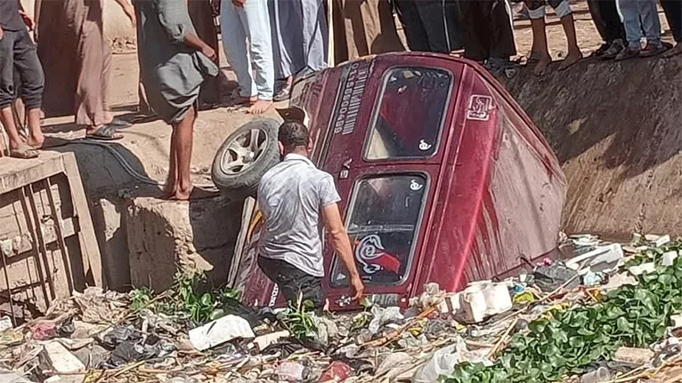 سقوط سيارة في ترعة بلمشط بالمنوفية