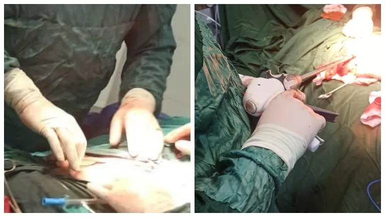 وبعد إجراء التقييم السريري والإشعاعي، تقرر إدخاله فورًا إلى غرفة العمليات، حيث كشفت الجراحة عن قطع كامل في الطحال وتهتك شديد في مساريقا الأمعاء. وقد تم على الفور استئصال الطحال وترميم المساريقا بنجاح.