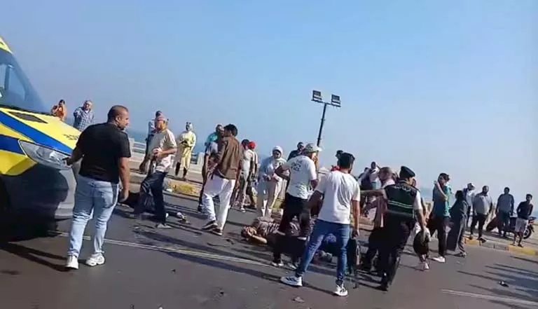 ويظهر مقطع فيديو مشهد مروع للضحايا في كل مكان على الطريق بعدما اصطدم بهم الميكروباص الذي وصفه المواطنون بـ "الميكروباص الطائر"، فيما تنقل الإسعاف المصابين إلى المستشفى الأميري.