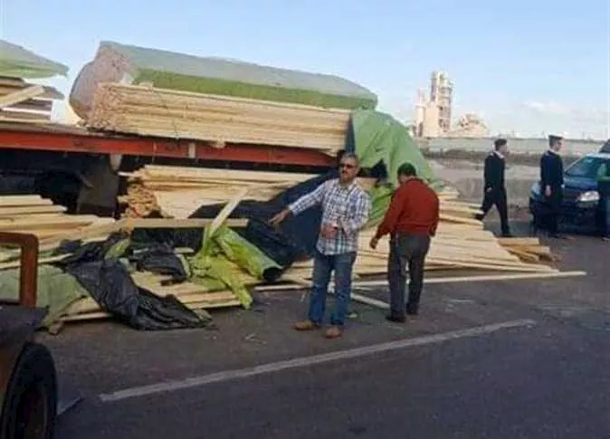 انقلاب سيارة محمّلة بالأخشاب يعطل الطريق الزراعي بالقليوبية