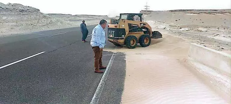 بالصور- حملة لرفع الكثبان الرملية من طريق شرم الشيخ الدولي