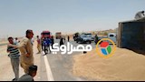 القمح غطى الأسفلت.. الصور الأولى من انقلاب شاحنة غلال على صحراوي أسيوط