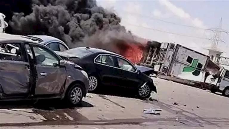 اشتعال وتفحم 4 سيارات.. إصابة 20 شخصًا في حادث مروع على طريق الضبعة بمطروح