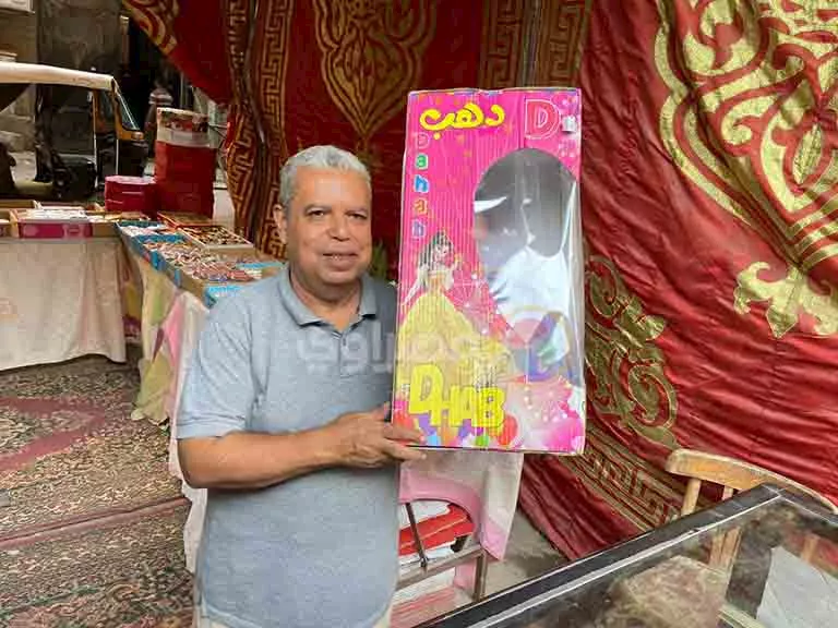 بدلوٍ مملوء بالمياه بدأ أيمن مزيد، 56 عامًا، في نَثر الأرضية أمام فرشته البسيطة بحري السكة الحديد بمدينة الباجور في محافظة المنوفية ظهرًا، يرش الطريق كأنه يفتح باب الموسم الذي عاش معه عمره كله أيمن، بائع "حلاوة المولد" منذ ثلاثين عامًا، عرفه الناس بفرشته التي تفوح منها رائحة الحمصية والفولية والسمسمية والملبن والجوزية، جنبًا إلى جنب مع العرائس والحصان السكر، تلك الأشكال التي لا يكتمل المولد من دونها.
