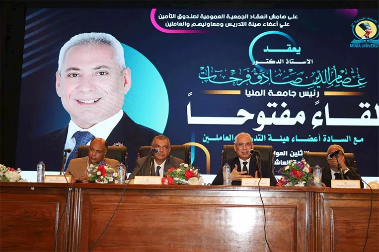 جاء ذلك خلال حوار مفتوح عقده رئيس الجامعة، اليوم الاثنين، مع أعضاء هيئة التدريس والعاملين، بحضور نواب رئيس الجامعة وأمينها العام، استعرض فيه رؤية الجامعة وخطة التطوير المستمر استعدادًا للاحتفال باليوبيل الذهبي.