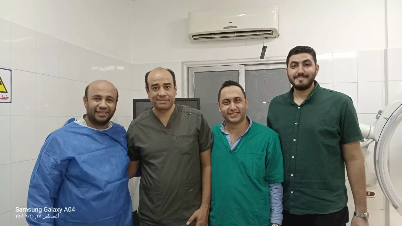 قاد الفريق الطبي الدكتور إبراهيم ناصر مدير المستشفى، وشارك فيه كل من: الدكتور عبدالعليم هلال، والدكتور أحمد هلال، والدكتور محمد ممدوح، والدكتور علاء عبد ربه، والدكتور أحمد تعيلب، بمساندة فريق تمريض العمليات وقسم الجراحة، حيث تمكنوا من إزالة الدعامة القديمة واستخراج الحصوات من القناة المرارية وتركيب دعامة جديدة بنجاح.