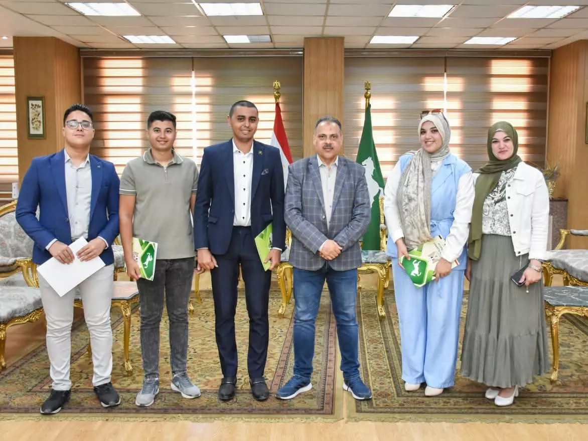 سلم المهندس حازم الأشموني محافظ الشرقية 4 من طلاب جامعة الزقازيق شهادات اجتياز الدورة التدريبية والتي أقيمت بمركز معلومات شبكات المرافق العامة بالمحافظة لتعريفهم بطبيعة عمل الشبكات واستخدام تطبيقات نظم المعلومات الجغرافية GIS وتوقيع الاحداثيات.