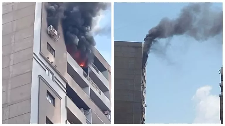 نيران في الطابق الـ 15.. حريق هائل يلتهم شقة سكنية بالإسكندرية- صور