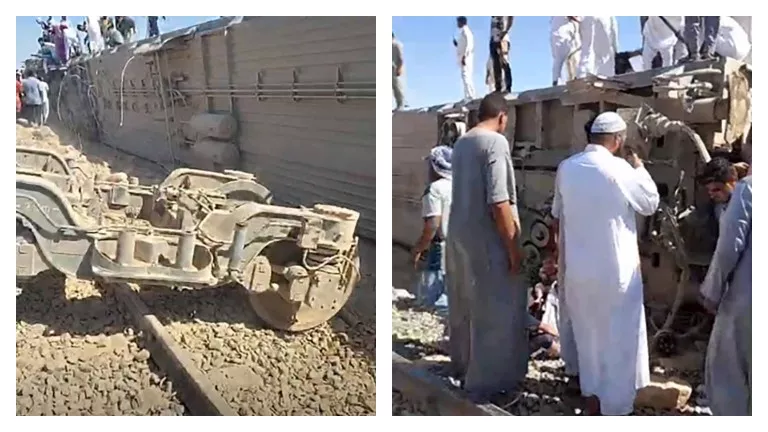 وتُظهر الصور ومقاطع الفيديو المتداولة انقلاب العربات على جانب السكة، وسط حالة من الفزع بين الركاب.