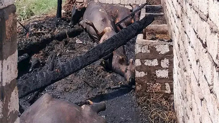 بسبب عقب سيجارة.. نفوق 4 رؤوس ماشية في حريق بالمنيا -صور