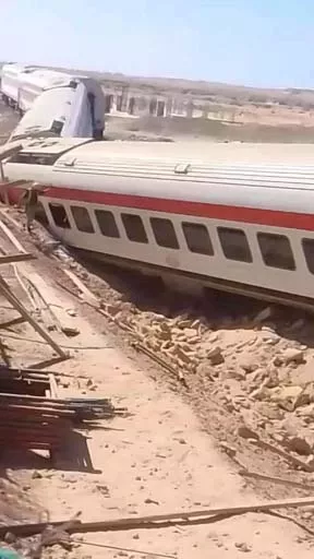 وكان قطار الركاب رقم 1935 تعرض لحادث مفجع بخروج 7 عربات عن القضبان وانقلاب عربتين، ما أدى إلى توقف الحركة على الخط ووقوع الضحايا.