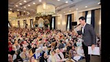 شهد حفل زفاف مدرس اللغة العربية أحمد محمد الحنبلي توقفًا غير متوقع للـ"دي جي" لمدة 25 دقيقة، حينما قرر العريس تقديم درس في مادة البلاغة أمام المعازيم وطلاب الدروس الخصوصية الذين يعمل معهم، في قاعة الأفراح بمدينة الفيوم.