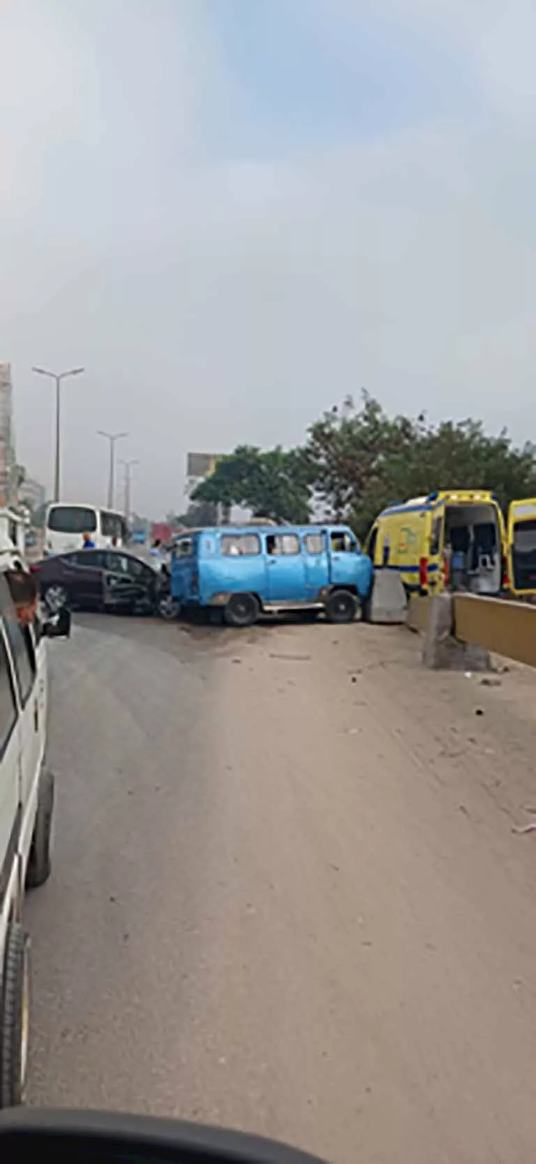 بالصور- تصادم ميكروباص وسيارتين ملاكي على الطريق الزراعي بالقليوبية