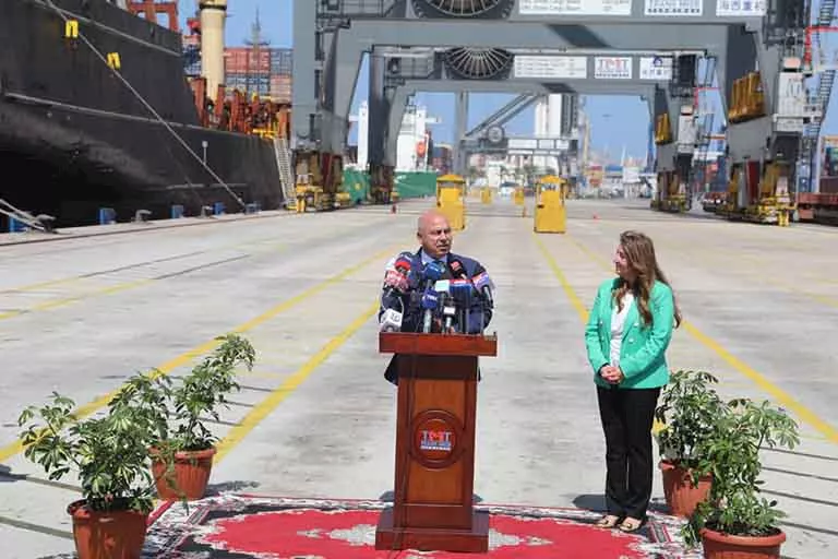 جاء ذلك خلال مؤتمر صحفي عُقد بمحطة تحيا مصر متعددة الأغراض بميناء الإسكندرية، ضمن جولة تفقدية للوزير بالميناء، وبمشاركة السفيرة الأمريكية لدى مصر هيرو مصطفى غارغ، وبحضور قيادات وزارة النقل والهيئة العامة لميناء الإسكندرية وعدد من كبريات الشركات الأمريكية المهتمة بالاستثمار في مجال النقل البحري.