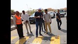 وخلال الجولة، تابع المحافظ أعمال تركيب المطبات الصناعية وفق معايير مدروسة ومسافات محددة بما يحقق التهدئة المطلوبة لحركة المركبات حفاظًا على أرواح المواطنين والمترددين على الطريق.