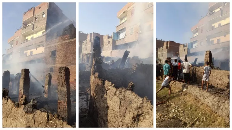 السيطرة على حريق في 7 منازل بسوهاج.. ونفوق مواشٍ (صور)