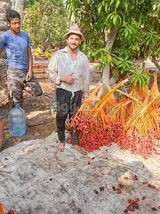 ويؤكد محمد مؤنس - مزارع أن إنتاج البلح ليس بالأمر السهل، إذ تمر النخلة بمراحل شاقة من الرعاية تبدأ بالحلاقة، ثم التلقيح وربط السباطات، ورش المبيدات لمكافحة الآفات، وصولًا إلى مرحلة الجمع. في هذه العملية الصعبة يتولى "الحزام" مهمة الصعود إلى قمة النخلة مستخدمًا الحابول أو الحزام التقليدي لإنزال المحصول.