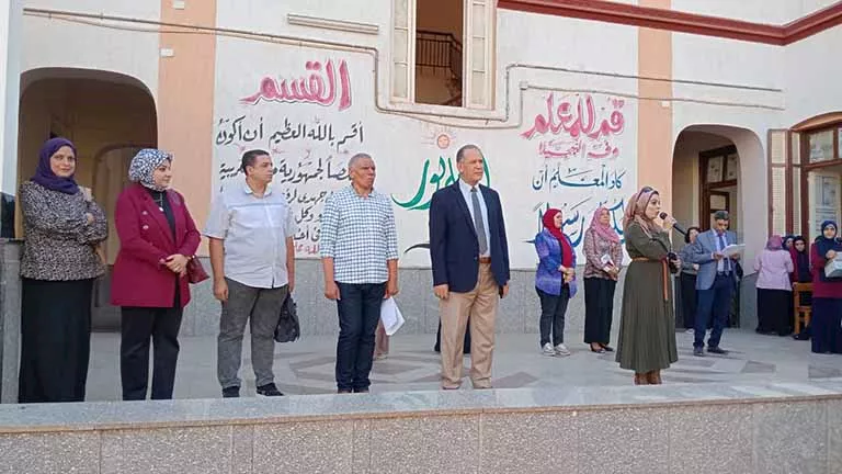 وخلال الجولة، شارك دسوقي في الطابور الصباحي، وشهد تحية العلم وترديد النشيد الوطني، واستمع إلى الكلمة الموحدة التي تناولت حب الوطن وتعزيز قيم الولاء والانتماء، مقدمًا التهنئة للطلاب والمعلمين بمناسبة بدء العام الدراسي، متمنيًا لهم عامًا مليئًا بالنجاح والتوفيق.