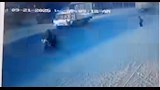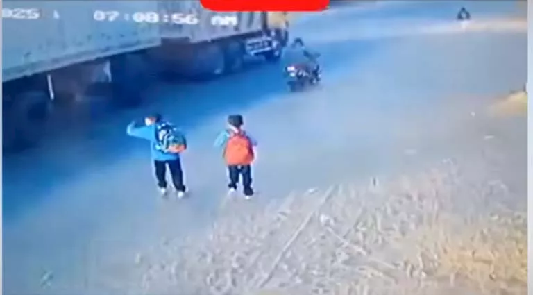 وخلال الفيديو ظهر طفلان يحاولان عبور الطريق، قبل أن تصدم سيارة نصف نقل مُسرعة الطفل الأول ليسقط أرضًا في الحال.