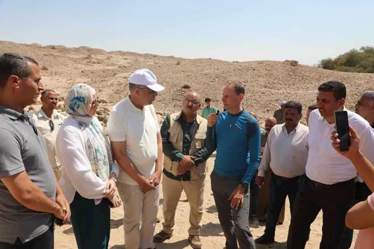 وتفقد المحافظ أعمال البعثة الأجنبية المشتركة من ألمانيا وبلجيكا وهولندا وإيطاليا بمنطقة زاوية سلطان، واستمع لشرح تفصيلي من أعضاء البعثة حول طبيعة العمل الميداني وطرق التنقيب والإجراءات المتبعة عند العثور على القطع الأثرية، وكيفية تسجيلها وحفظها وفق المعايير العالمية.