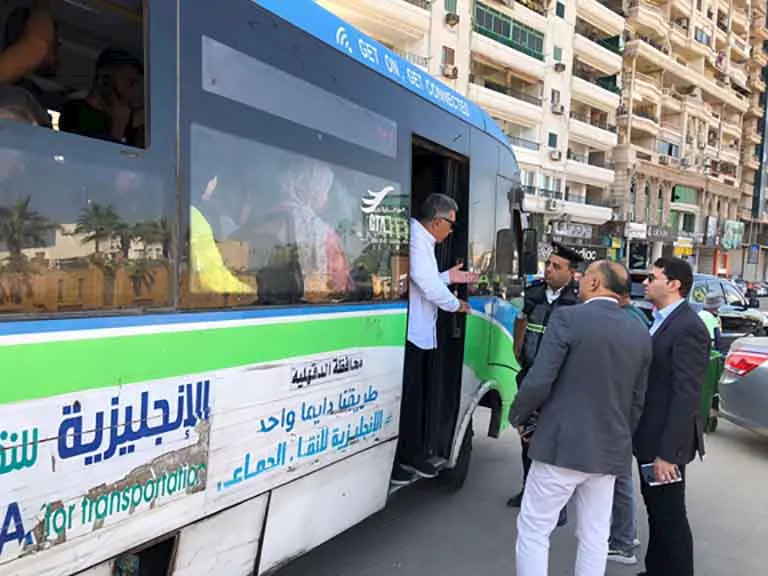 وتابع "مرزوق" بنفسه حركة نقل الركاب في الشارع، موجّهًا السائقين بالالتزام بالنظافة والصيانة الدورية للسيارات، والحرص على عدم تجاوز الأعداد المقررة للركاب، مع التشديد على حظر وقوف ركاب داخل الأتوبيسات.