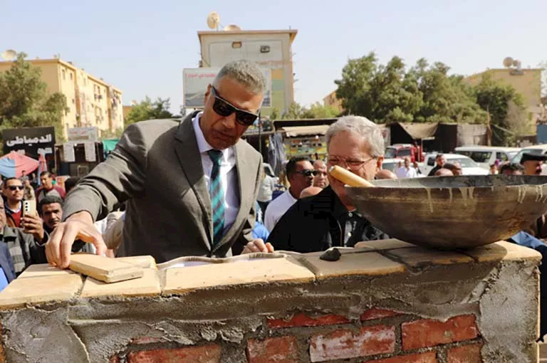 بالصور.. محافظ أسوان يضع حجر الأساس لكوبري السيل للمشاة
