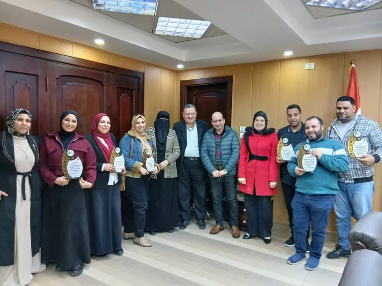 كرّم الدكتور حمودة الجزار، وكيل وزارة الصحة بمحافظة الدقهلية، اليوم، الفرق المتميزة التي شاركت في تنفيذ "المسح التدرجي الصحي" للأمراض غير السارية، وذلك تقديرًا للجهود المبذولة والإنجاز النوعي الذي تحقق خلال تنفيذ المسح على مستوى المحافظة، بحضور الدكتور تامر الطنبولي، وكيل المديرية للطب الوقائي.