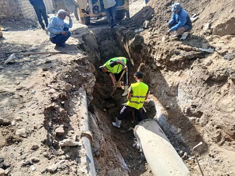 أشرف المهندس عمرو لاشين، نائب محافظ أسوان، يرافقه اللواء رماح السيد، السكرتير العام المساعد، ميدانيًا على أعمال الإصلاح والصيانة للكسر المفاجئ في خط الطرد الرئيسى بقطر 630 ملم من نوعية الـ GRP، الممتد من محطة الصرف الصحي رقم (11) بمنطقة الكرور، والذي حدث في منطقة الكشاشاب.