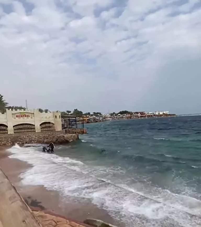 شهدت بعض شواطئ مدينة دهب بجنوب سيناء ارتفاعًا في الأمواج، نتيجة نشاط الرياح التي بلغت سرعتها نحو 23 عقدة في الساعة.