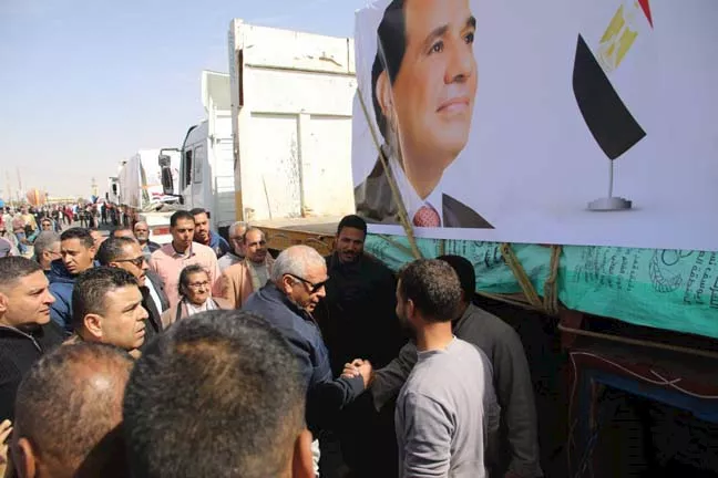 بالزغاريد والأعلام.. الوادي الجديد ترسل 25 شاحنة مساعدات إلى غزة – صور