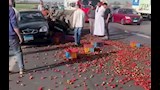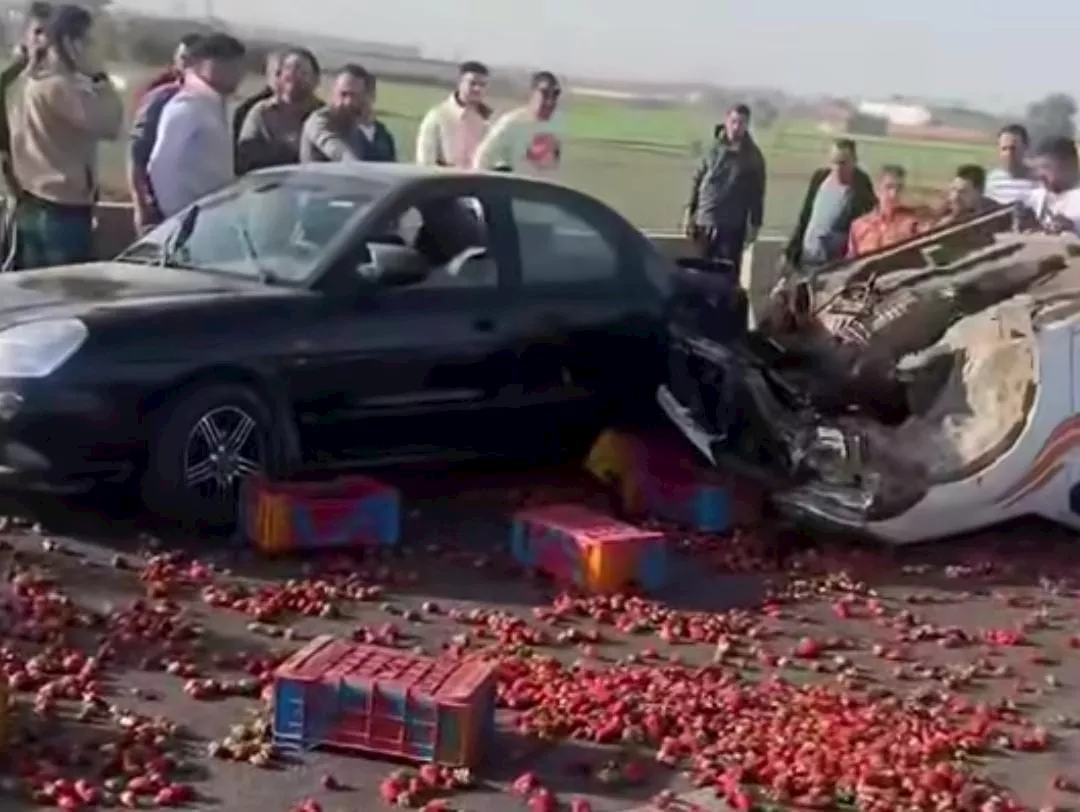 "فراولة على الأسفلت".. انقلاب سيارة في حادث بطريق شبرا - بنها الحر (صور)