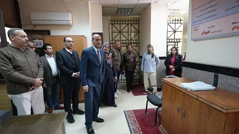 رافق المحافظ خلال الجولة الدكتور مينا عماد، نائب المحافظ، وعدد من القيادات التنفيذية، حيث شملت الجولة عددًا من الإدارات الحيوية، من بينها مركز التدريب، والمركز التكنولوجي، وإدارة خدمة المواطنين، ومركز المعلومات ودعم اتخاذ القرار، وإدارة المتغيرات المكانية، فضلًا عن المكاتب والإدارات المختلفة داخل الديوان العام، وحرص المحافظ على التعرف على طبيعة العمل بكل إدارة، وحجم المهام المكلفة بها، وآليات الأداء المتبعة، مؤكدًا أهمية رفع كفاءة الأداء وتطوير منظومة العمل الإداري بما يتواكب مع توجهات الدولة نحو التحول الرقمي وتحسين جودة الخدمات.