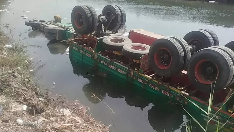 انقلاب تريلا محمّلة بالدقيق في ترعة