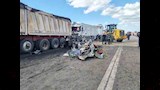 وأظهرت اللقطات الأولى من موقع الحادث تفتت سيارة النقل وارتطامها بسيارة ربع نقل محملة بالأفراد، ما أدى إلى وفاة جميع الركاب العشرة على الفور.