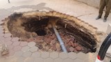 بالصور- هبوط أرضي مفاجئ في أحد شوارع مدينة ببا ببني سويف