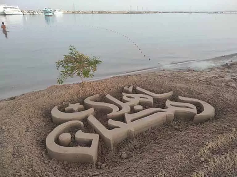 على الرمال الذهبية لـ "شاطئ القمر" بمدينة الطور، وبأنامل تعشق الإبداع، استقبل الفنان "إسلام النجار" شهر رمضان المبارك بطريقة استثنائية؛ حيث حول رمال الشاطئ الصماء إلى لوحة فنية ناطقة تحمل عبارة "أهلاً رمضان"، لتبهر رواد الشاطئ وتعلن قرب حلول شهر الروحانيات.