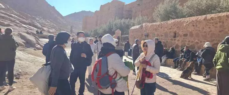 شهدت مدينة سانت كاترين بمحافظة جنوب سيناء، اليوم الجمعة، إقبالًا سياحيًا كبيرًا من قبل المصريين والأجانب، تزامنًا مع انتهاء إجازة نصف العام الدراسي.
