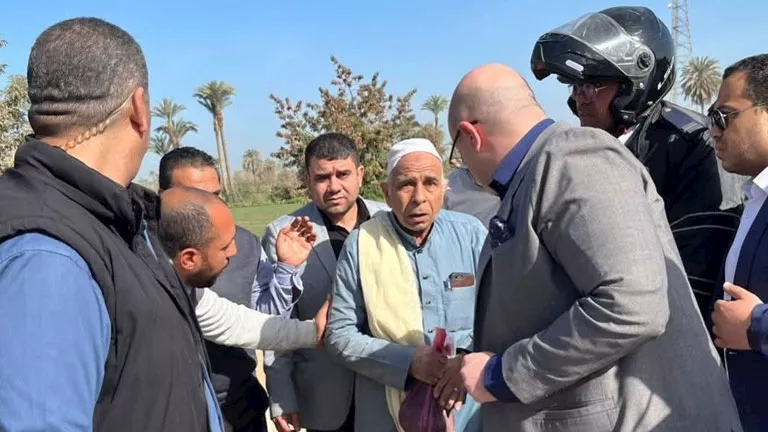 محافظ بني سويف يوقف موكبه للاطمئنان على مصاب في حادث على الطريق الزراعي