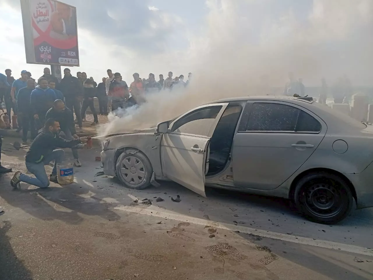 تدخل عدد من المواطنين باستخدام طفايات الحريق اليدوية الخاصة بسياراتهم لمحاولة السيطرة على النيران قبل وصول الحماية المدنية، والتي تمكنت بعد ذلك من إخماد الحريق بالكامل وإعادة الأمان إلى الطريق.