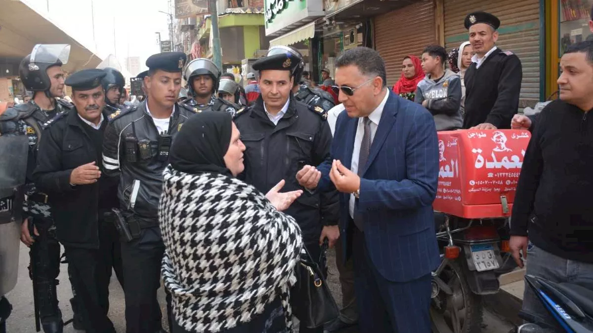 بالصور- محافظ القليوبية يقود حملة لنقل الباعة الجائلين وإعادة الانضباط للشارع