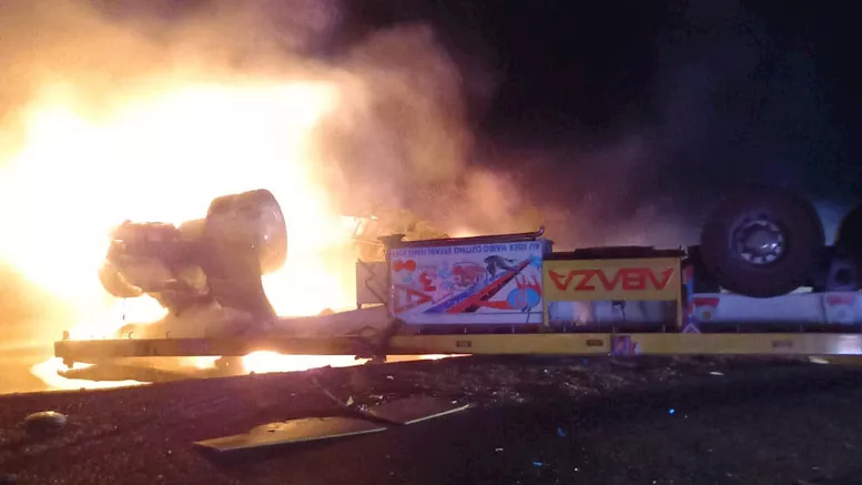 كان مرفق إسعاف السويس قد تلقى بلاغًا يفيد بانقلاب سيارة نقل يستقلها شخصان واشتغال النيران بها، وعلى الفور تم الدفع بسيارتين إلى موقع الحادث.